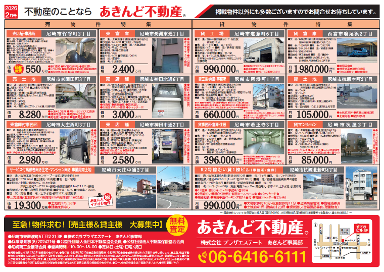 このほかもチラシに未掲載の物件を多数ご紹介可能です、不動産物件の事なら些細なご質問からご相談まで是非一度、あきんど不動産 06-6416-6111 までお問い合わせください!